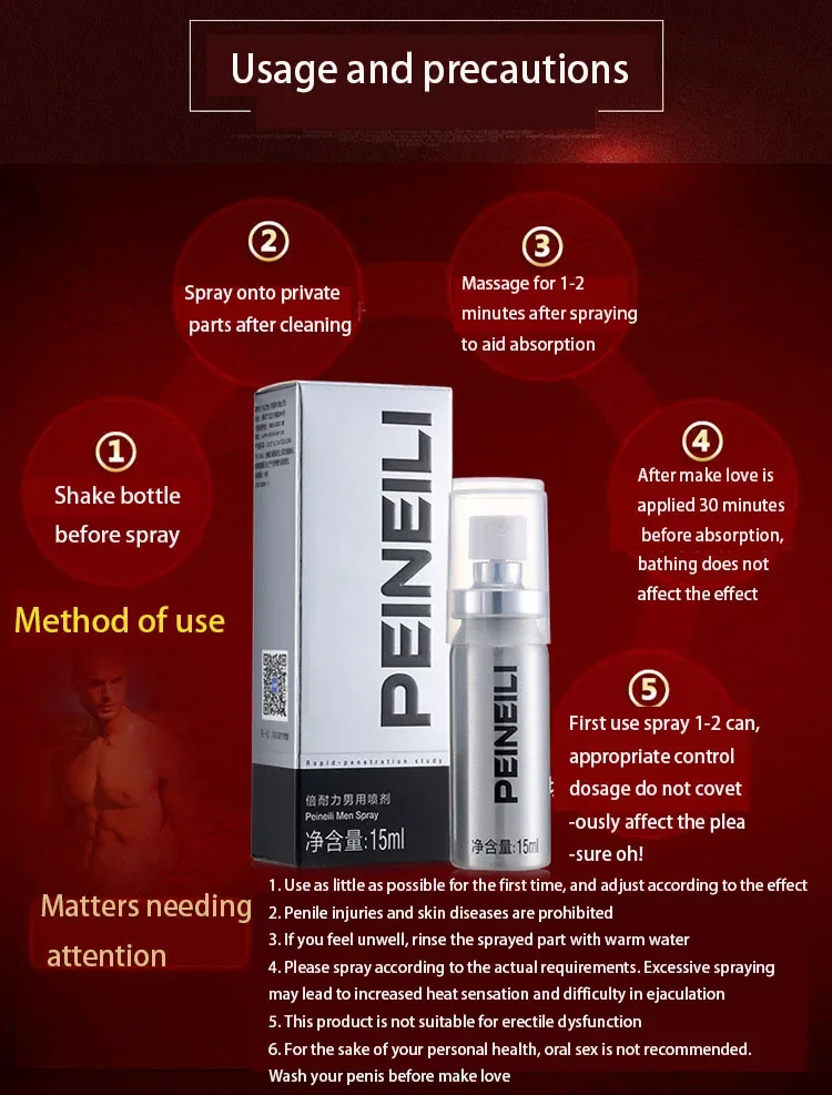 Spray over the glans penis and coronary sulcus with This product 30 minutes before sexual intercourse,then spread evenly.