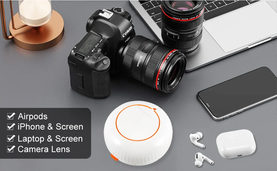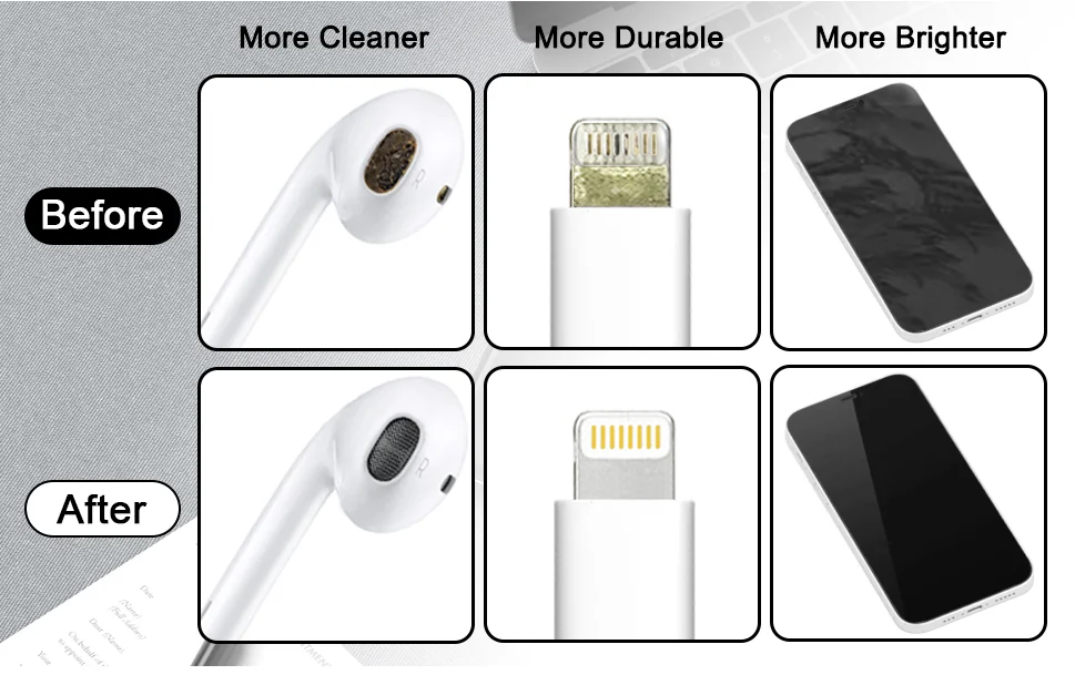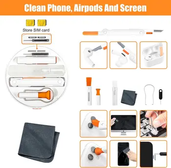 1. Computer Laptop Phone Screen Cleaner Kit: This phone cleaning kit with screen cleaner spray, retractable microfiber fiber cloth, soft lens cleaning pen, lightning port cleaner and other charging port cleaning tools, it can effectively remove dust, fingerprints, and debris from your electronic devices, providing a clean and clear display, and restoring unreliable connections.   The electronic cleaner kit offers SIM card ejector pin and slot, allowing users to remove or save the SIM card easily.
