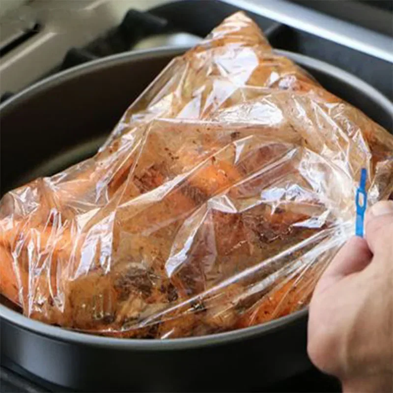 Crafted from PET, these oven bags withstand high temperatures, ensuring safe and efficient roasting.