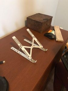 I have a stand for my laptop that a friend’s dad made me a long time ago. I left it at the office at the beginning of the COVID stay at home orders thinking it would not be gone that long. here we are 60 some days later and I still didn’t have a laptop stand. I had been searching for one similar to the one I left at the office for weeks now and I am so so glad I finally found this stand. It is super lightweight, it is really easy to set up, it’s sturdy, and I absolutely love that you can adjust the angle of your laptop and I like that it keeps your laptop on the desktop and not up super high like most of the stands I see. I think I like this one more now than my favorite one at work.