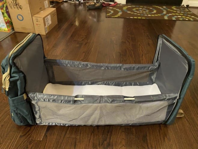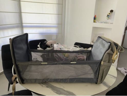 Carry this must-have accessory as a diaper bag and convert it into a baby bed on demand!