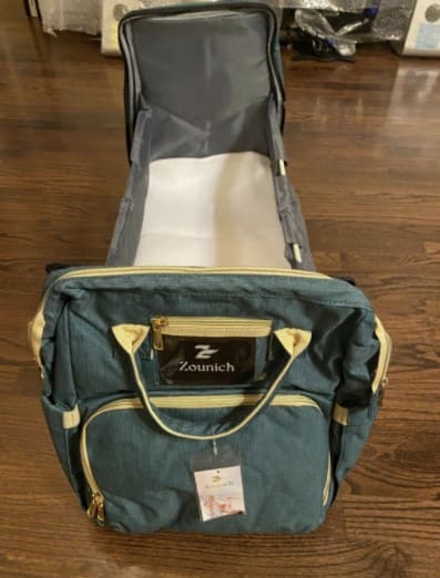What a unique multi functional travel bag which is a combined diaper bag backpack, bassinet, nappy bag, travel crib, portable baby changing station. With insulated 3 bottle pockets, 5 compartment inside and Concealed waterproof zip pockets at the back and inside, it’s roomy enough to store all baby stuffs, included with removable changing pad/mattress. Thick, durable, machine washable material and foldable easily, this bag is an all in 1 small and light travel bag to accommodate baby needs and mom. It can be worn as shoulder bag, stylist backpack or hanging on a stroller, which makes travel more convenient and easier. I am sold with all the features this bag has and can’t wait to use it for my upcoming baby!