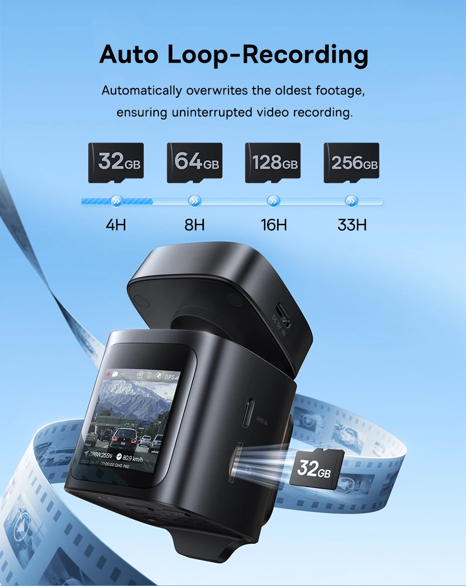 Automatically overwrites the oldest footage, ensuring uninterrupted video recording.