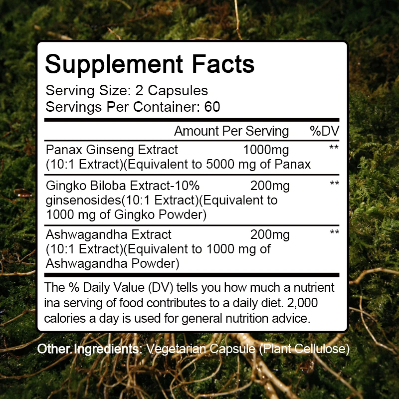 BBEEAAUU Ginseng Ginkgo Capsules Support Healthy Brain, Memory Cognitive Functions,Combat Stress & Fatigue Improve Immune System