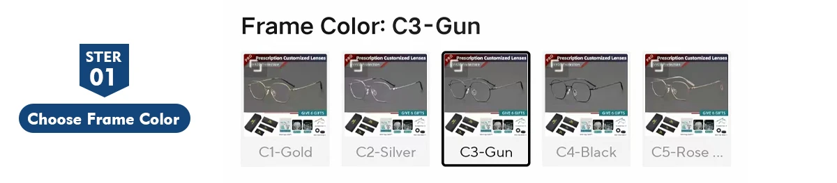 Select your favorite frame color from the options (example: C3 Gun)