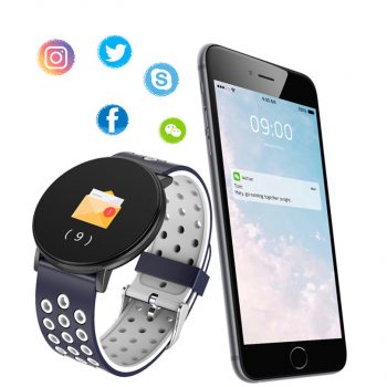 - Functions: Blood Pressure, Passometer, Sleep Tracker, Push Message, Heart Rate Tracker, Blood Oxygen, Alarm Clock, Remote Control, Social Media, Notifications, Message Reminder, Call Reminder