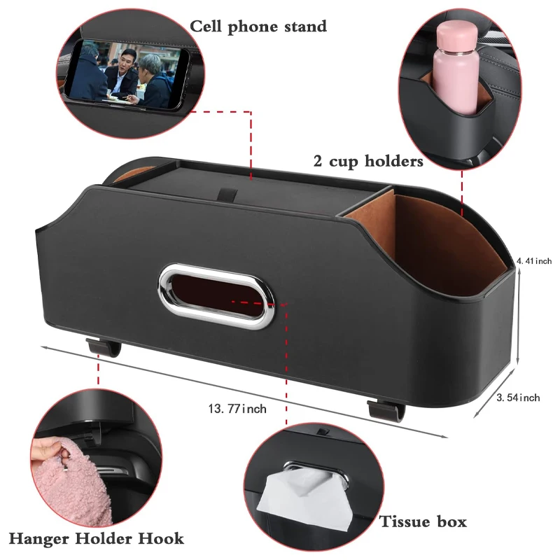 Car Multifunctional Leather Tissue Storage Box Under Seat Auto Back Seat Paper Bag Place Water Cup Holder Hanging Hook Organizer