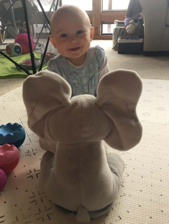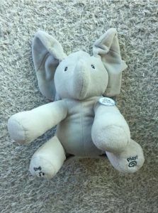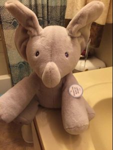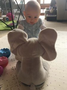 I found this elephant on lightening deal and it had great reviews. I decided to get it for my newborn and she loves it. I use it for when I change her diaper. it sings a song and also plays hide and seek. It’s ears come down over its eyes and then back to normal. It is very cute and babies love it! It is a decent size as well.