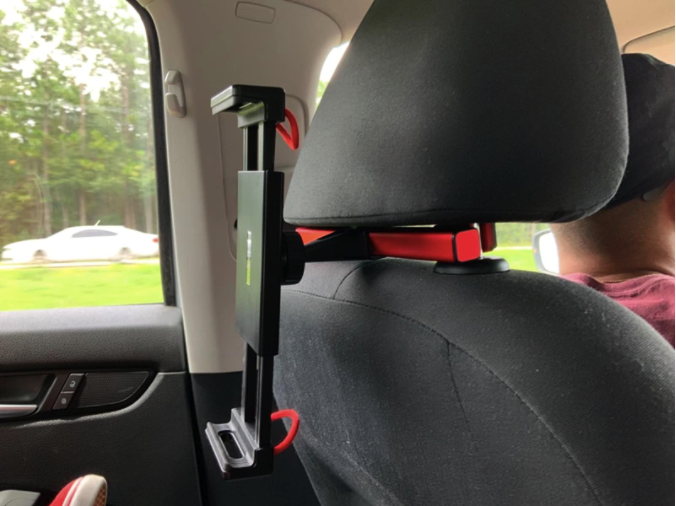 Great idea for entertaining the kids in the back of the car on a long journey with no fighting over who can hold the device or who can’t see it properly. The Ipad was secure and didn’t wobble about at all. My only issue with it is, I wish it could bend back slightly to make it easier to see in the back seats. It was a bit too close to the kids in the back for them to be able to see it properly from their seats without leaning into the middle a bit. Obviously it’s position is determined by how far forward the front seat that it’s attached to is but I moved that seat as far forward as I could without crushing my knees and still it was too far back.