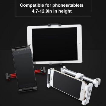 Extends easily by pulling out two small ropes, i can help my kid from the front seat to put in an ipad. Good for both ipad and phone.