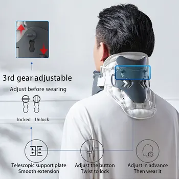【Dynamic Traction】 Cervical neck traction device by supporting the chin with the front bracket, the head is in a natural backward position, and the cervical spine will show a natural curvature. The airbag supports the cervical and back, and pulls the occiput upward to achieve the effect of pulling open the intervertebral space open. So you may feel pain and uncomfortable feeling of squeezing, adjust the height and tightness to produce a gentle stretch.