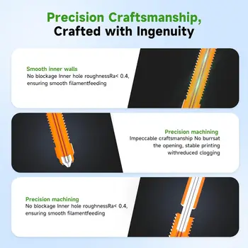Precision Craftsmanship: Connections are tightly fitted, effectively preventing filament leakage. Smooth inner wall for smooth filament feeding. No burrs at the aperture, stable printing, not easy to block material. Advanced processing technology makes the printing model more smooth and delicate