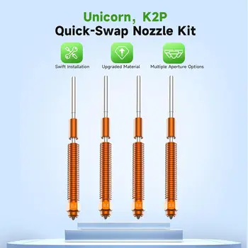 Upgraded Material: The heat break is made of titanium alloy, which can effectively reduce heat conduction. K2P nozzle is made of copper alloy and hardened steel bimetallic material, which has high thermal conductivity and high hardness for better performance. Supports PLA, ABS, PETG, TPU, PP, PC, PLA-CF, PA-CF, PET-CF multiple filament printing