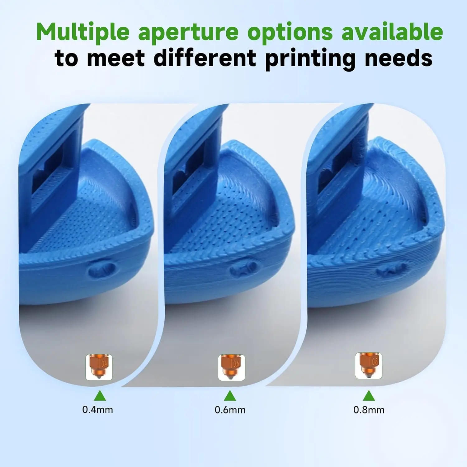 Quick-Swap: Creality Hi Combo nozzle 0.4mm adopts all-metal integrated design, which is quick to assemble and easy to replace, saving time and labor. When replacing the nozzle, you can add the thermal grease that comes with the package, which is used to fill in the small thermal gaps and improve the efficiency of thermal conduction