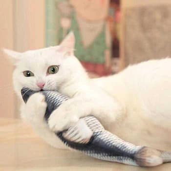 Our dancing fish not only looks like a real fish, but also acts like a one as well. Designed to flop when touched and stay still when left alone, your cat will be bewildered (or terrified?) by the life-like behavior of this toy. True to life, the fish will even adjust its flopping speed according to the motion around it. If your cat is scurrying around it, it’ll flop excitedly in sync. If your cat moves around it slowly and cautiously, the fish will play along. It’s entertainment that’s as real as it gets — all without the water and smell.