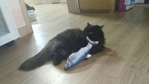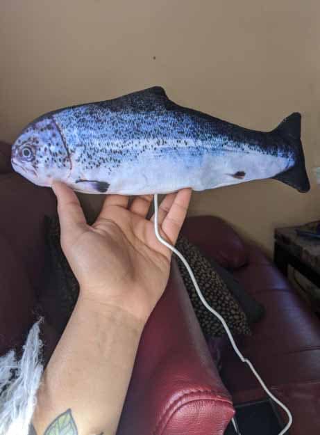 Our dancing fish not only looks like a real fish, but also acts like a one as well. Designed to flop when touched and stay still when left alone, your cat will be bewildered (or terrified?) by the life-like behavior of this toy. True to life, the fish will even adjust its flopping speed according to the motion around it. If your cat is scurrying around it, it’ll flop excitedly in sync. If your cat moves around it slowly and cautiously, the fish will play along. It’s entertainment that’s as real as it gets — all without the water and smell.