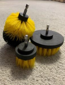 Great for scrubbing tubs, shower stalls, and tiled walls and floors. Love the different size brushes. Wear goggles, old clothes, use a cheap shampoo on the brushes with a bucket of hot water to wet down the surface you’re cleaning, use a “cordless” drill, so you don’t get shocked, and scrub away!