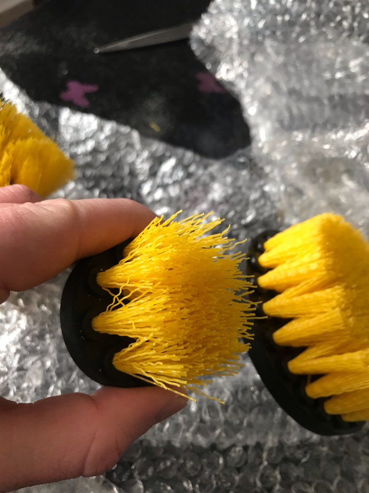 Bought these to clean out the vehicles in our household. I was not expecting them to work as well as they did. These made very easy work of some pretty nasty carpet and floormats. I used Chemical Guys’ citrus upholstery shampoo with these and it honestly made a humongous difference. Just knowing that I don’t have to spend hours scrubbing by hand is a huge plus for me. Hook these into a drill and you are going to be done lightyears faster!