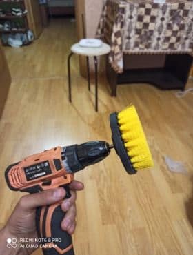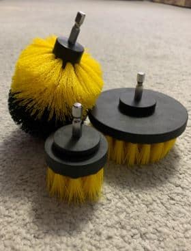👍 Medium-stiff nylon brush heads attach to your favorite cordless drill