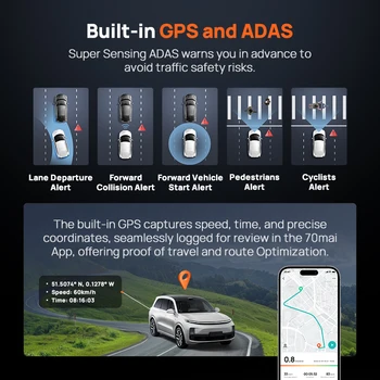 The built-in GPS captures speed, time, and precise coordinates, seamlessly logged for review in the 70mai App, offering proof of travel and routeoptimization.