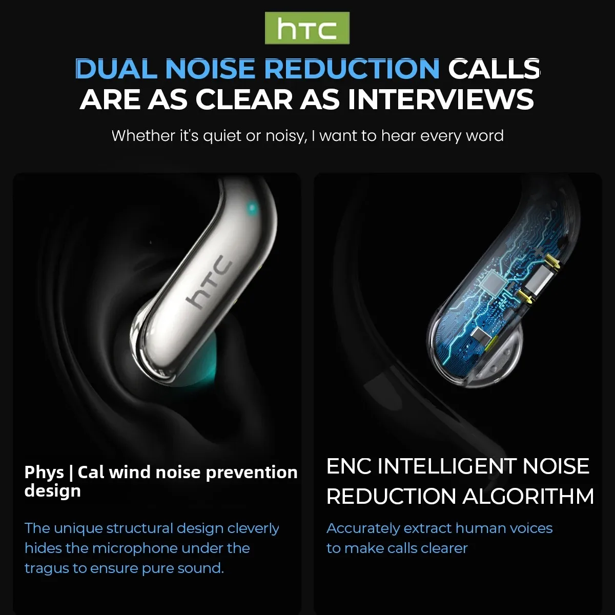 The high-sensitivity microphone and ENC call noise reduction algorithm filter out wind noise and
