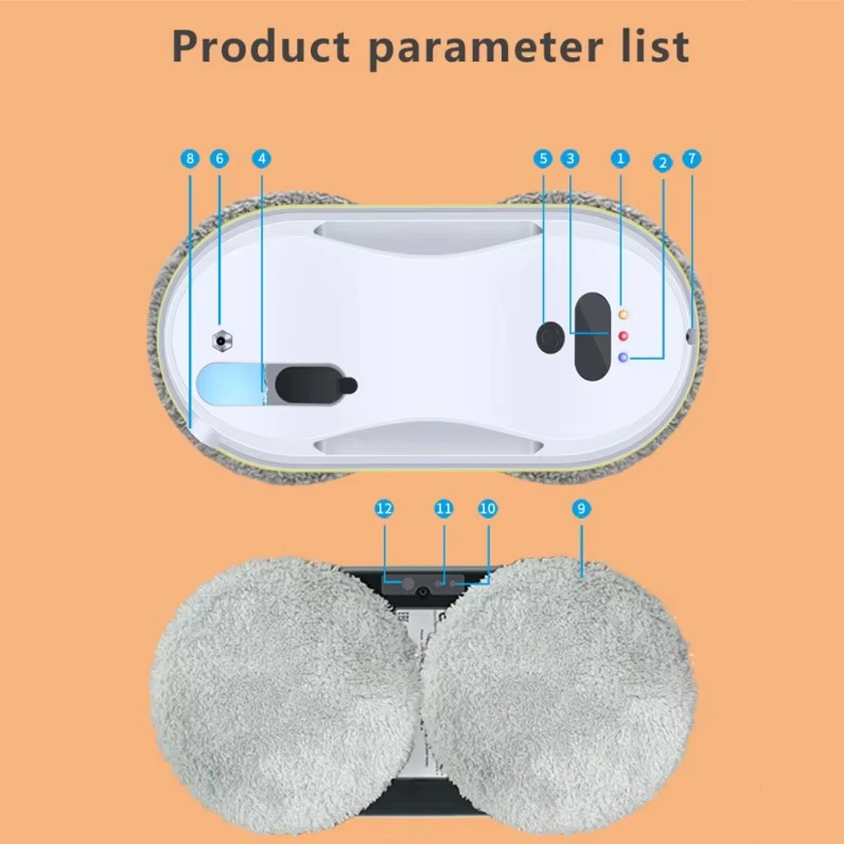 1. Wait 20 seconds after starting up until the blue light stop flashing,Then start working. Because the robot need 20sec to detect the glass plane.