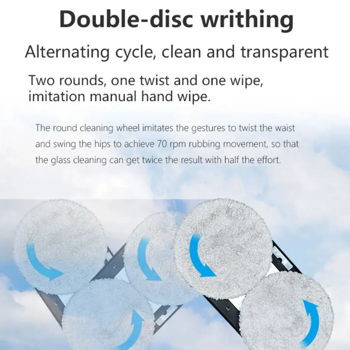 1. Wait 20 seconds after starting up until the blue light stop flashing,Then start working. Because the robot need 20sec to detect the glass plane.