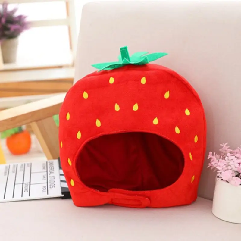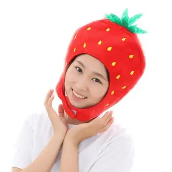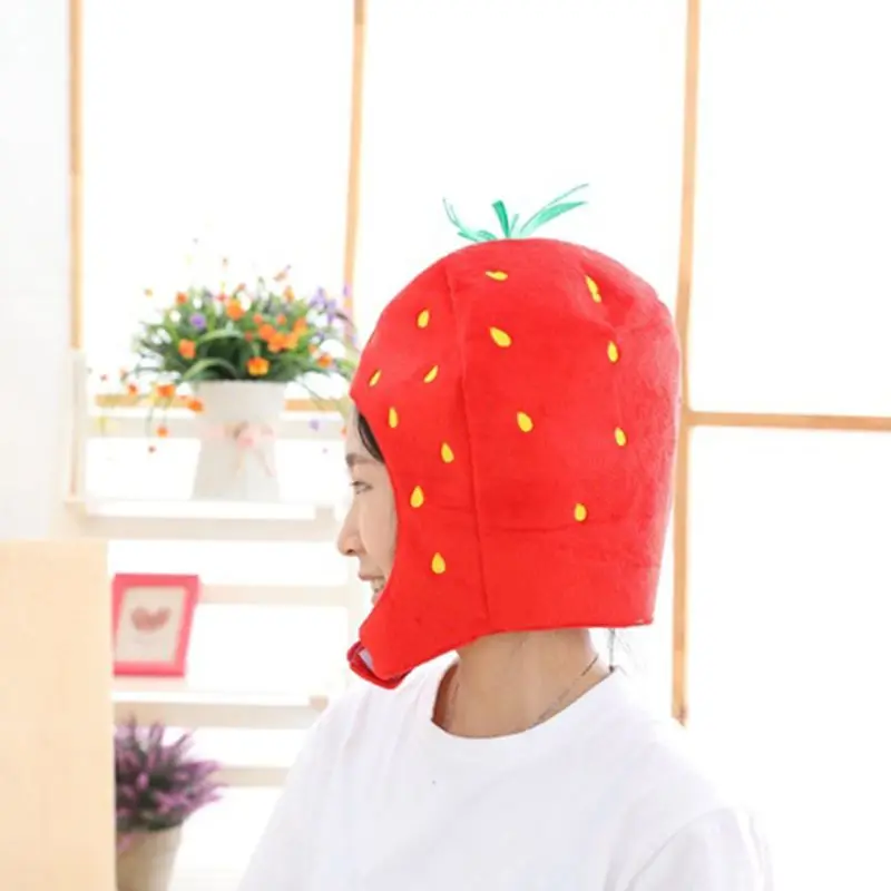 Japanese Sweet Women Girls Funny Strawberry Plush Hat Embroidery Fruits Hood Mask Party Cosplay Costume Photo Props Toys