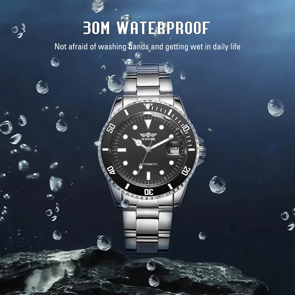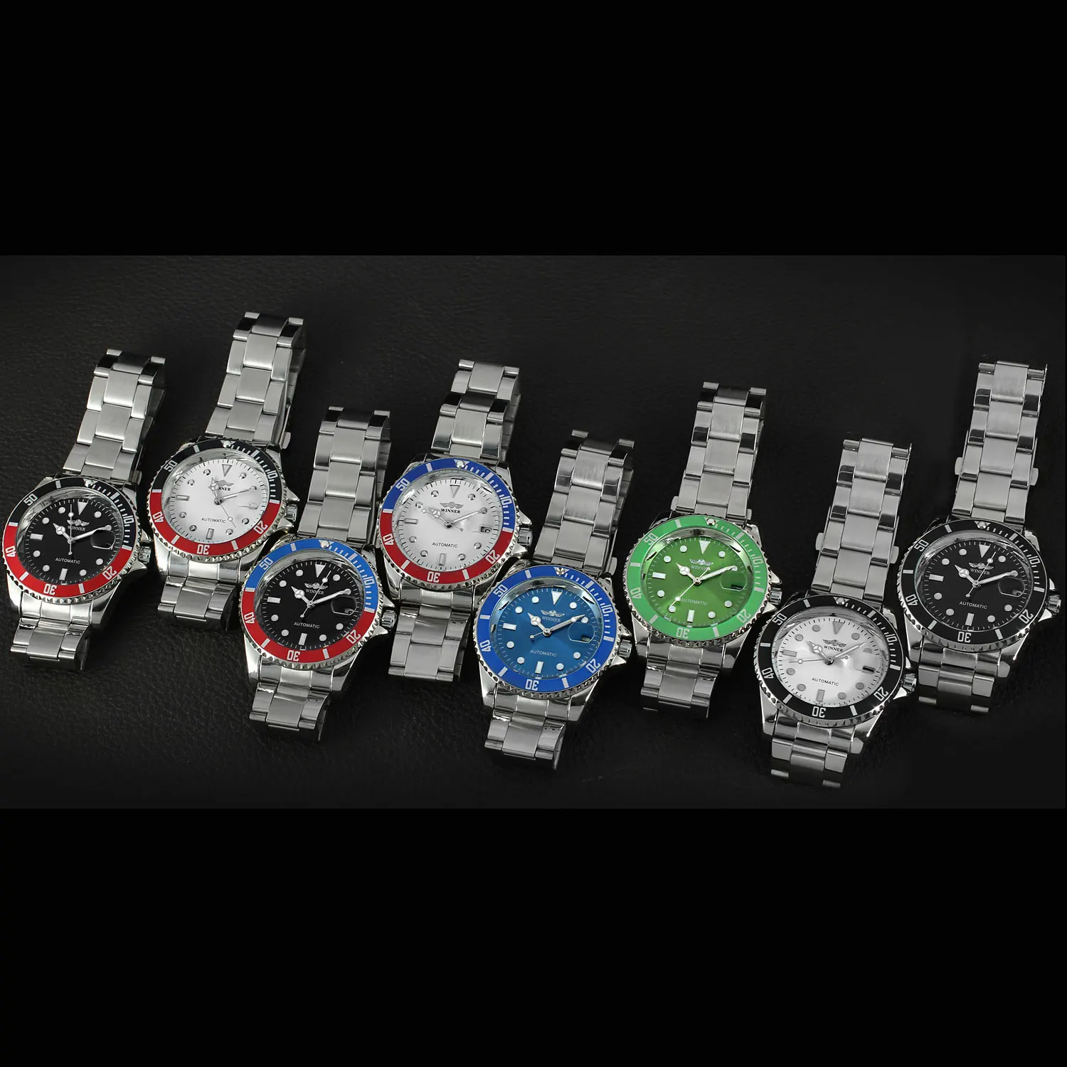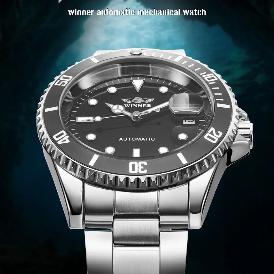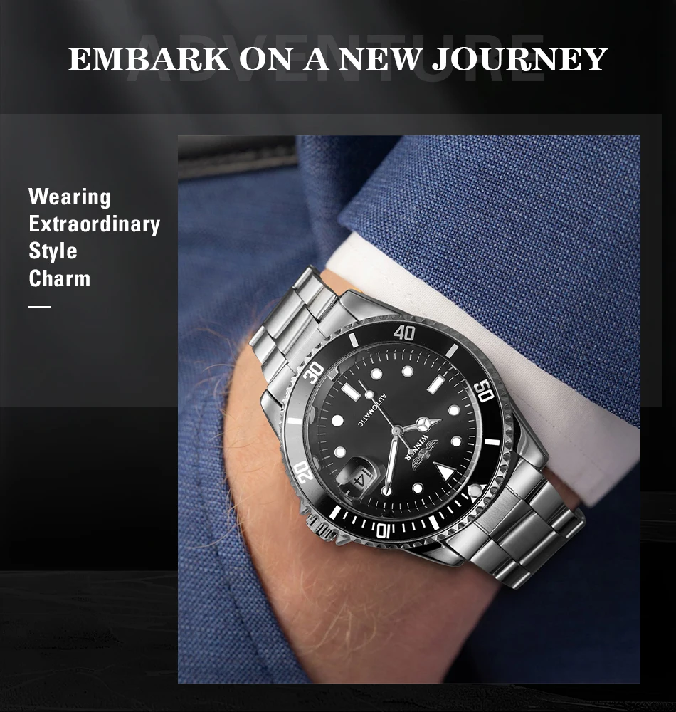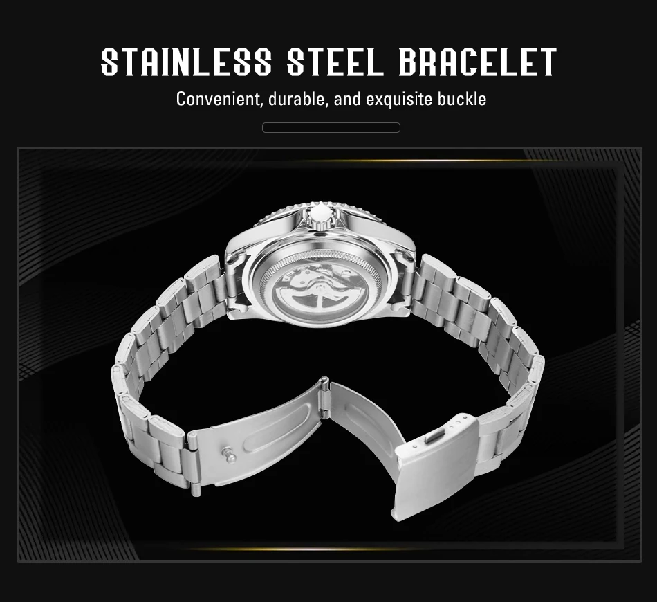 Luxury Brand Classic Mechanical Watches Business Automatic Movement Watch for Men Rotatable Bezel Luminous Stainless Steel Strip