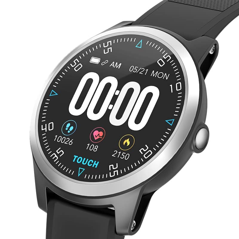 • Functions: Alarm Clock, Heart Rate Monitor, Blood Pressure Monitor, Pedometer, Sleep Monitor, Call and Message Alert, Camera Control
