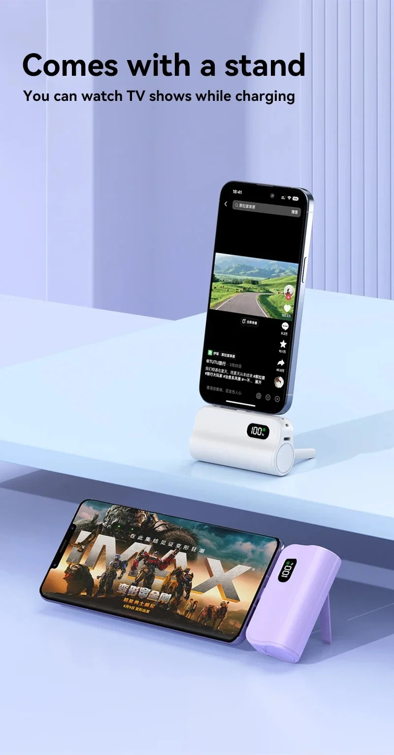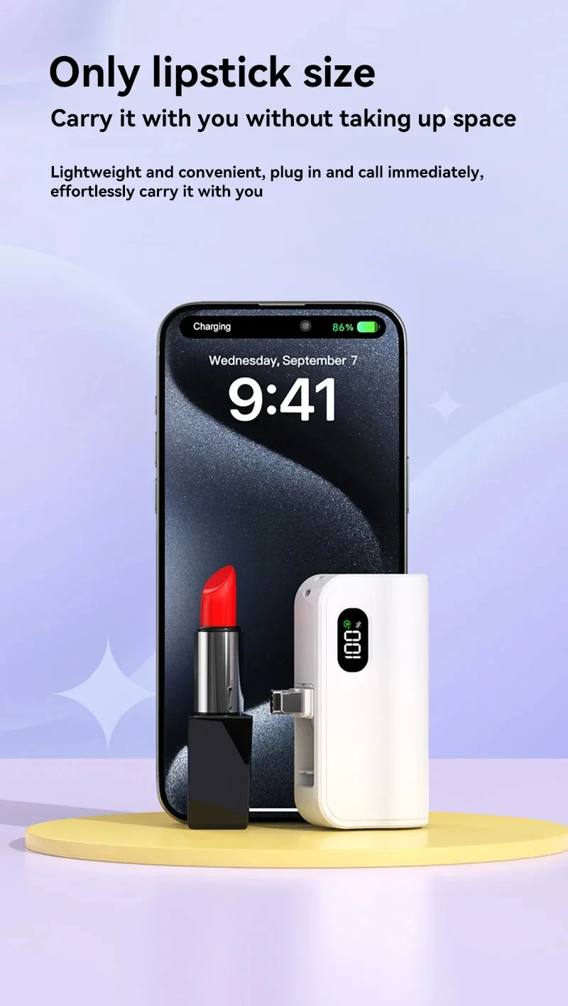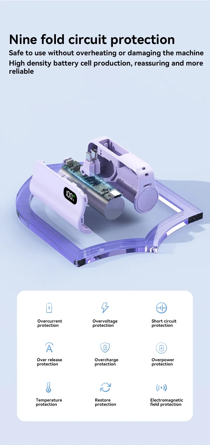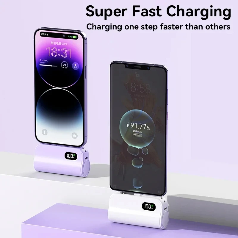 Mini 50000mAh Capsule Power Bank 2-in-1 Large Capacity Digital Display Portable Fast Charge External Battery For iPhone Samsung