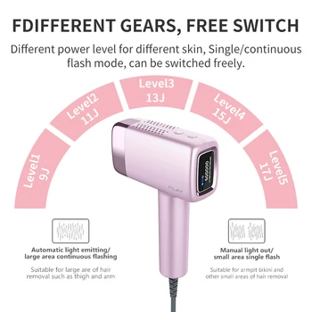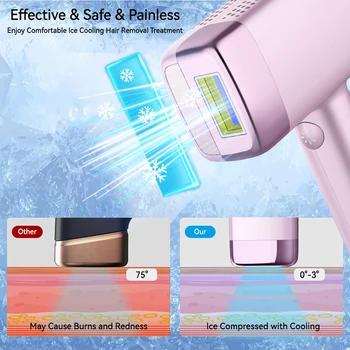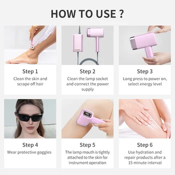 4. After finishing treatment, must to cooling down the skin about 2-3 minutes. For facial hair, it is recommended to wait until there no discomfort after body hair removal for two weeks, then use it on the face. And always choose the 1 energy level to use on face at the first time, prevents allergens from irritating skincare residue sand causing discomfort.