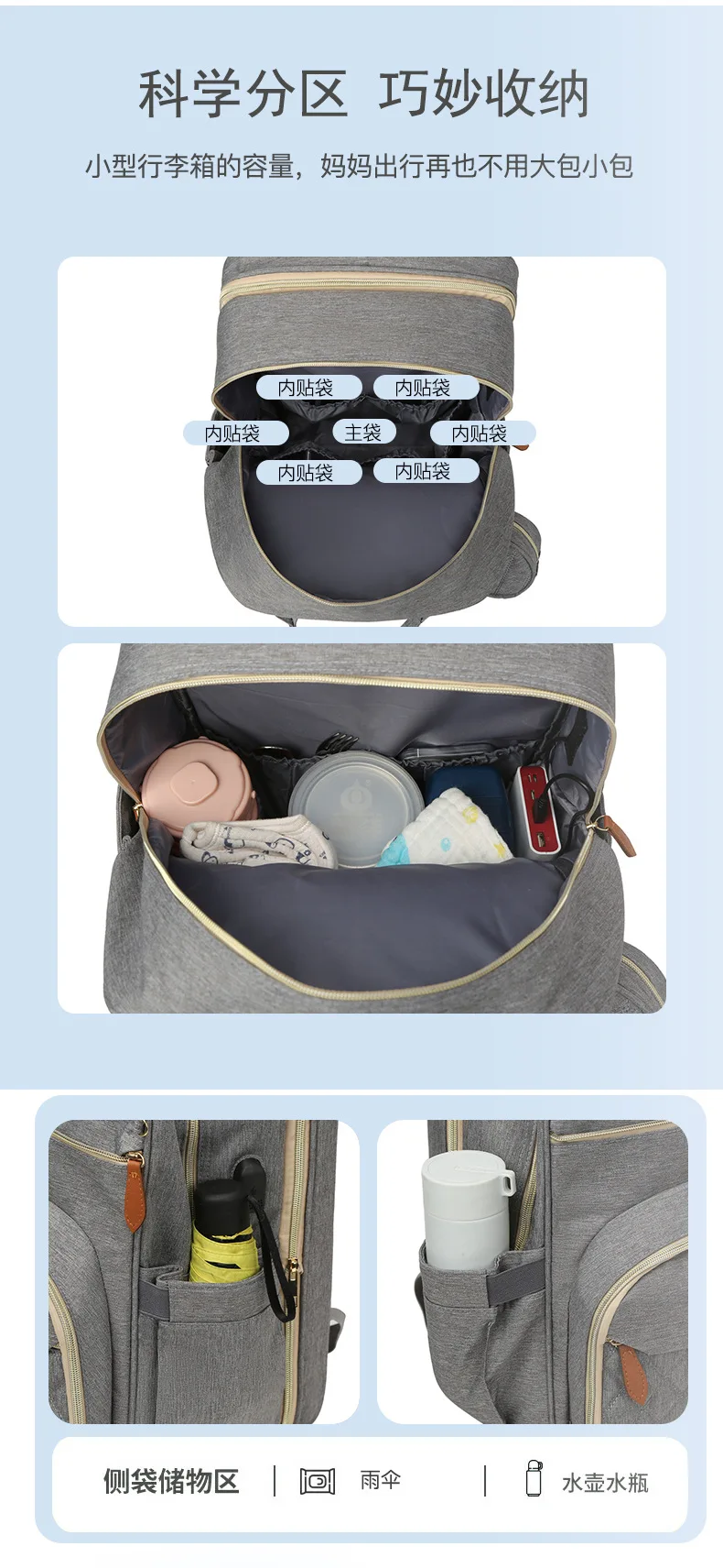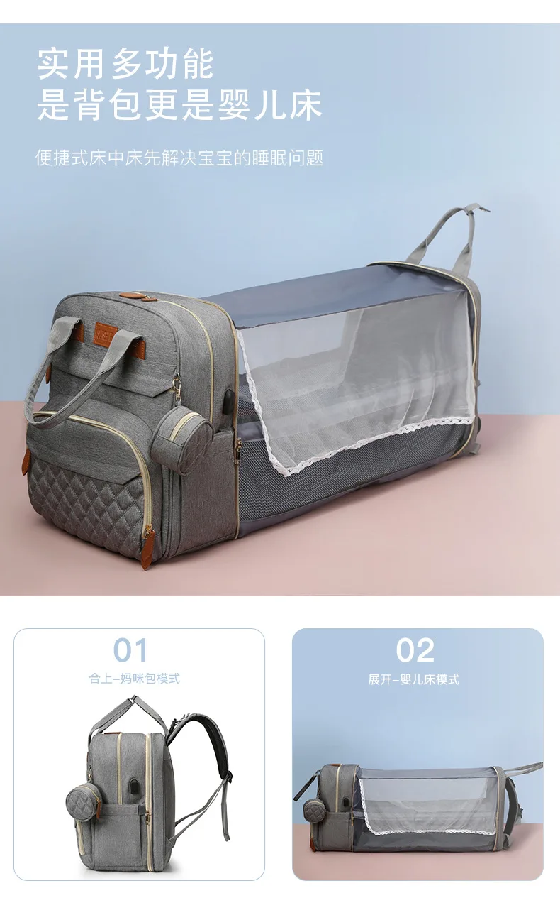 Multi Functional Portable Foldable Baby Crib Mommy Bag High-end Backpack Lightweight Backpack for Mother Baby Going Out