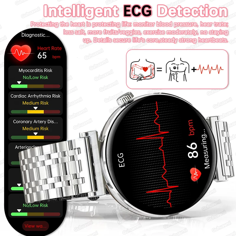 NEW Women Smartwatch 1.32inch AMOLED Screen ECG Sport Watch Blood Pressure Micro physical examination AI dial Health Smart Watch
