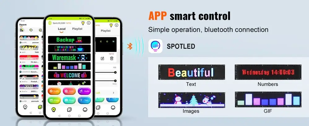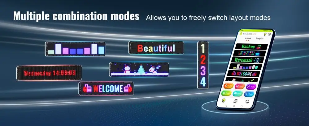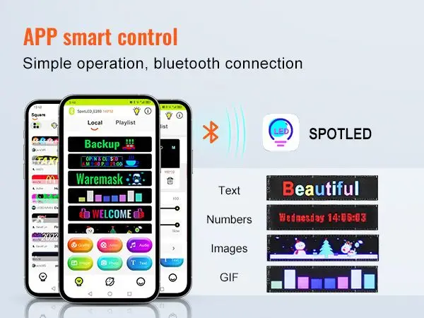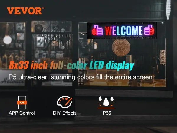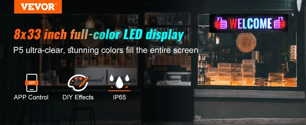 P5 32.9×8 Full Color LED Sign Bluetooth APP DIY Programmable Text and GIF Display Scrolling Panel for Commercial Advertising