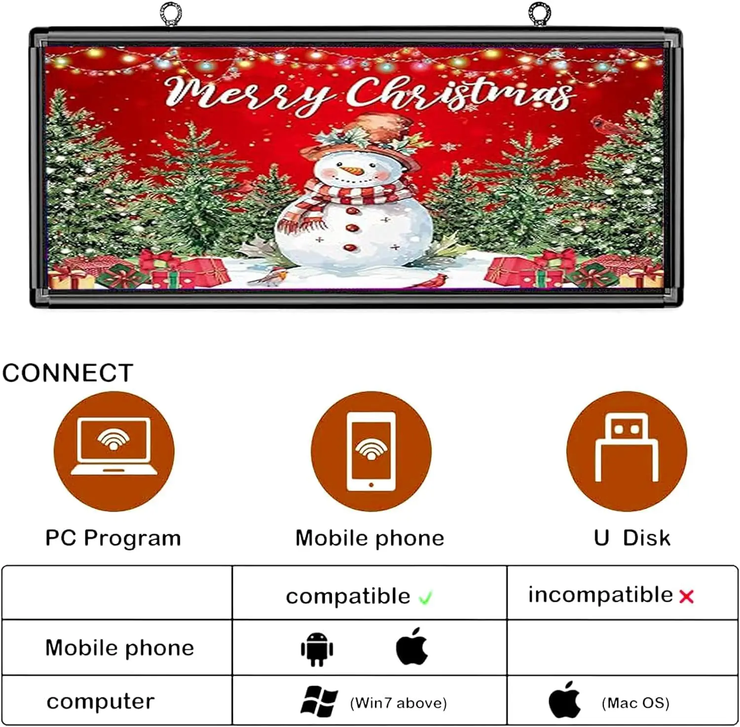 HIGH QUALITY – Outdoor full color LED Signs size 40″ x 18″ ,strong aluminium case. Programmable message by PC software save to u-disk and update through U-disk,Or sent the message by WIFI. PC software only support Windows system, can't support Mac Os. also can program message by smart phone.Wi-fi connection by Iphone and Android APP to update the message (Just scan the code to download the app)