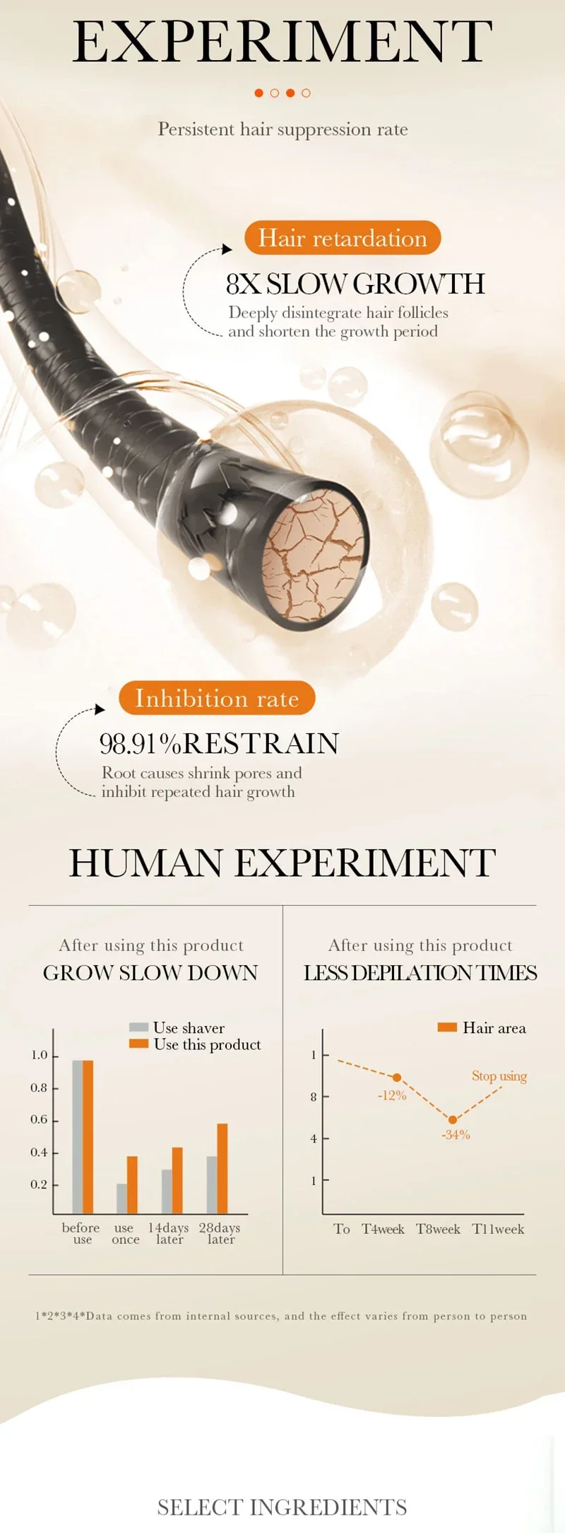 moisturizes and softens the hair roots, easily removes hair without damaging the skin, leaving the skin clean without black spots,and returns your smooth and tender skin with full charm.