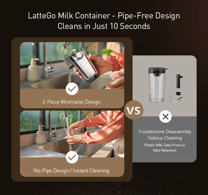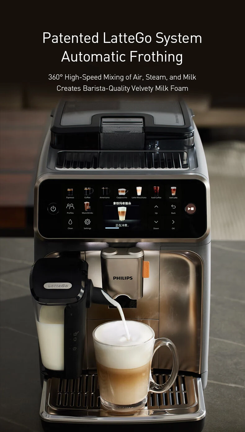 Patented LatteGo System: Uses 360° high-speed mixing of air, steam, and milk to create barista-quality velvety foam.