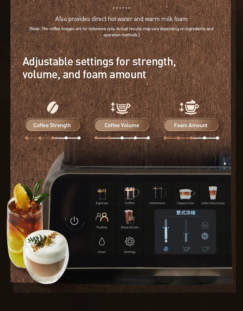 Fully Customizable: Adjustable settings for coffee strength, volume, and foam amount.