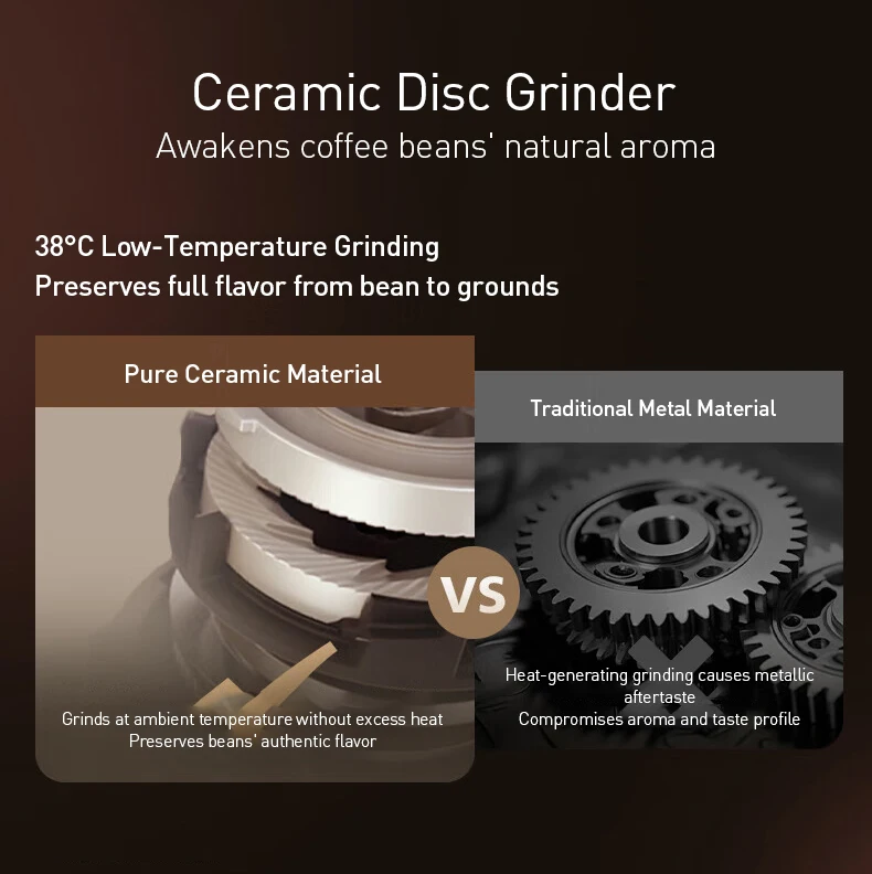 38°C Low-Temperature Grinding: Prevents heat transfer, preserving the beans' authentic flavor without metallic aftertaste.