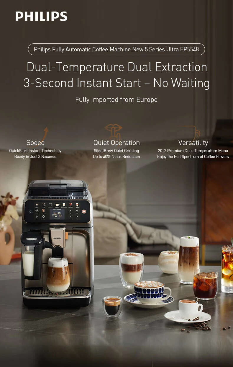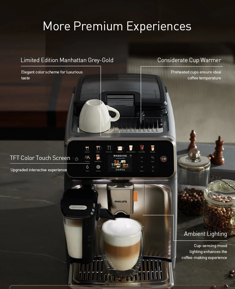 Philips 5500 Series Ultra Fully Automatic Coffee Machine TFT Color Touch Screen with Ambient Lighting AromaExtract System