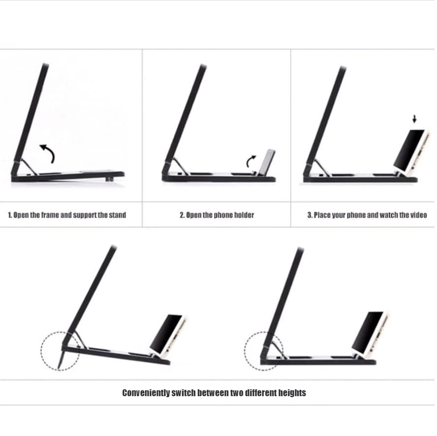 Hands free designed with adjustable phone holder stand, free your hands when using this cell phone screen magnifier to watch films and videos.