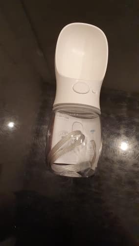 It’s a wonderful water bottle for your dog just tipping over and push a button and it fills with water and he drinks it and you throw the rest out .He gets quite a few drinks and it’s just really easy to carry round I highly recommend it~❤️
