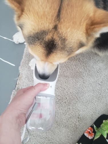 Now with this water bottle/bowl combo I just fill the water bottle and go! My dog LOVES drinking from the contraption. Loves it so much that when we get home from the walk, she will sit on the couch and I will sit next to her and just let her drink water out of this water bottle as she lays on the couch.