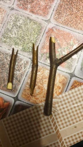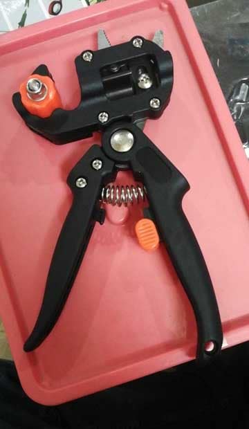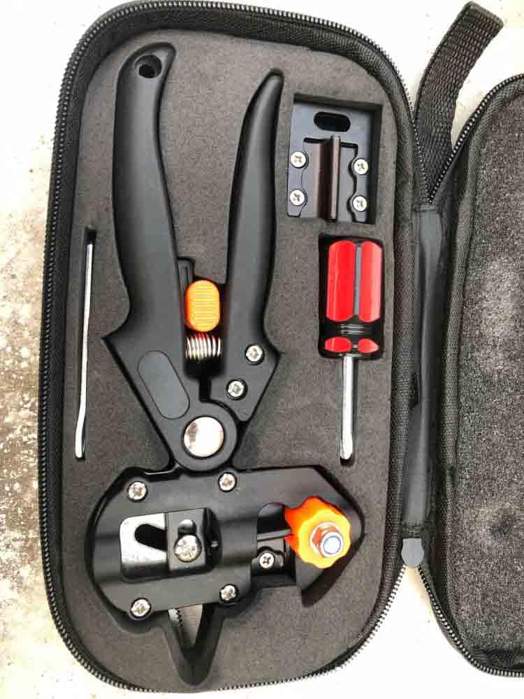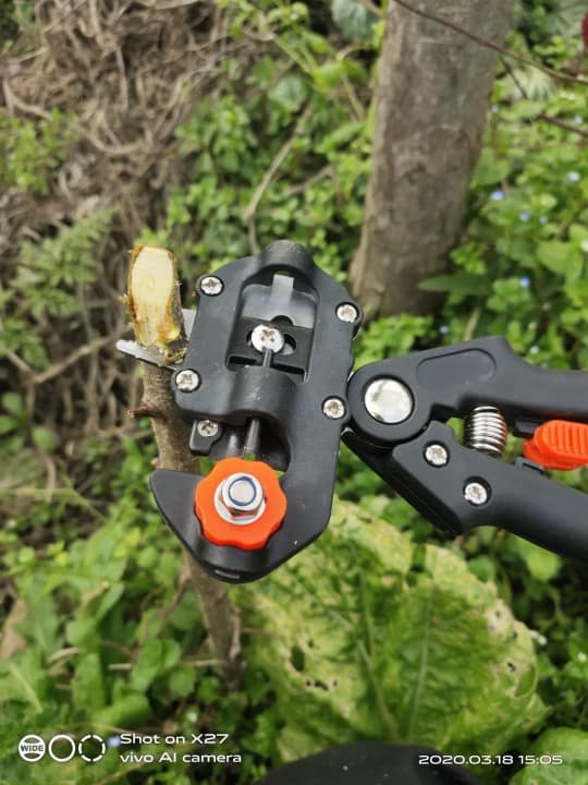 This toolset has every that needed for grafting and makes grafting a job look so easy, can’t be more simple. I can either cut the branches with Ω or U or V shape. All these three work well. The shear is great for cutting small branches but not a big one. I don’t measure the size when I cut. I just see if the shear can fit the branches, I cut them.