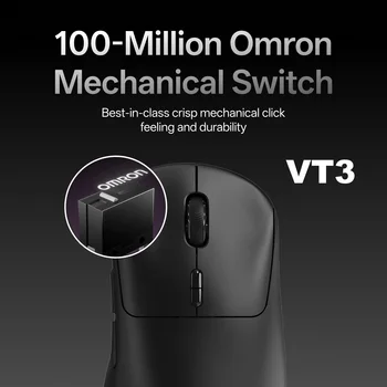 (VT3) Omron 100-Million Mechanical Switch: Retains the typical click feeling and sound of mechanical mouse switches, we did try our best to reduce the double clicking issues inherent in mechanical microswitches – by increasing the lifespan from 60-million to 100-million. For users who don’t care much about mechanical clicking feedback, we recommend to choose the VT3 MAX Gen-2 version (120-million optical switch).