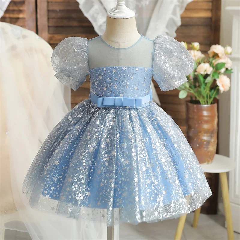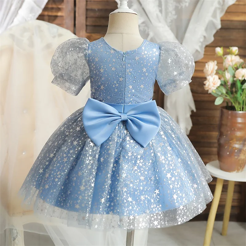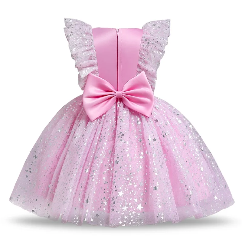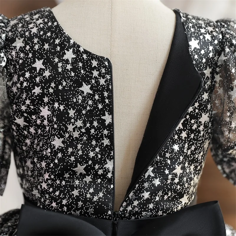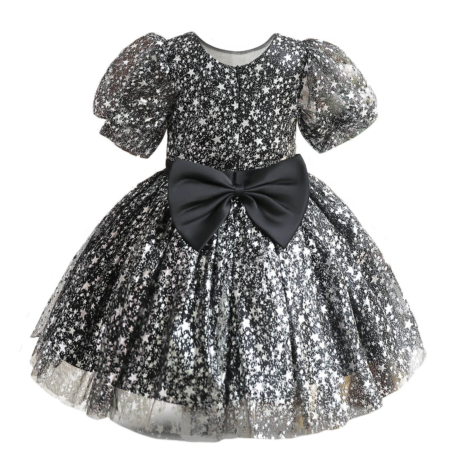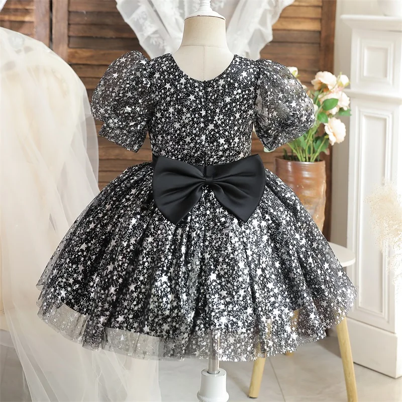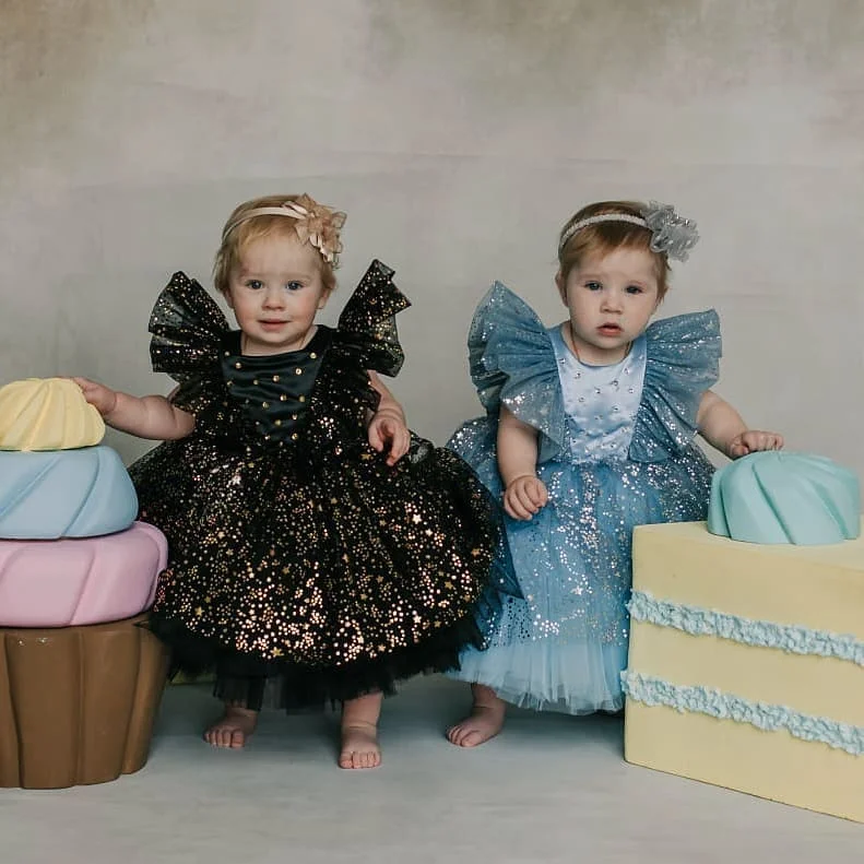 Ruffles Baby Birthday Clothes for Girls Sequin Elegant Wedding Princess Party Evening Dresses Bow Cute Toddler Kids Prom Gown