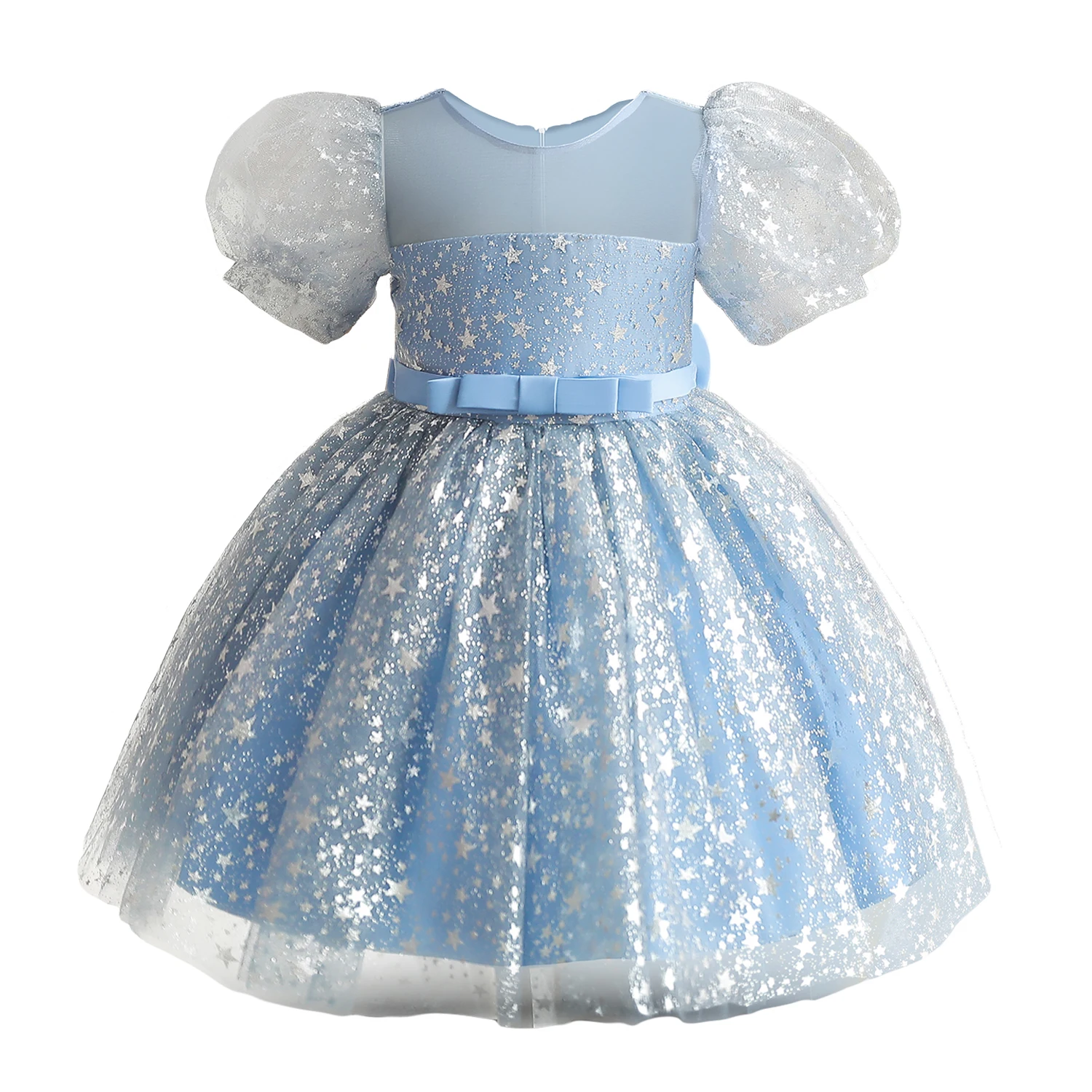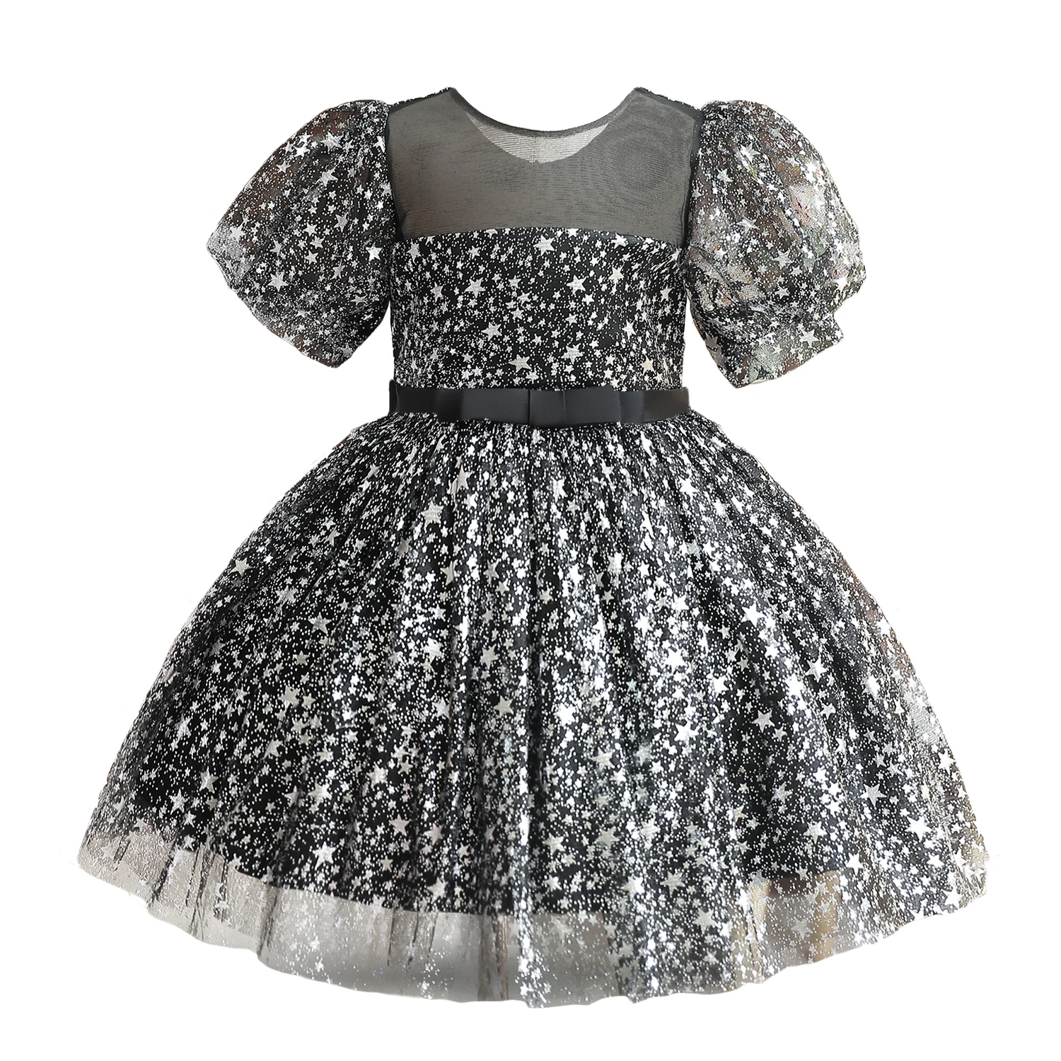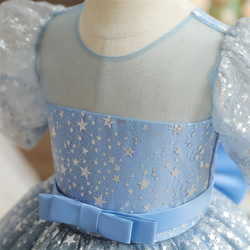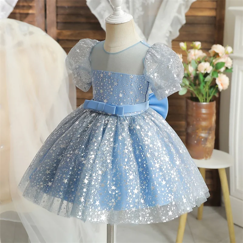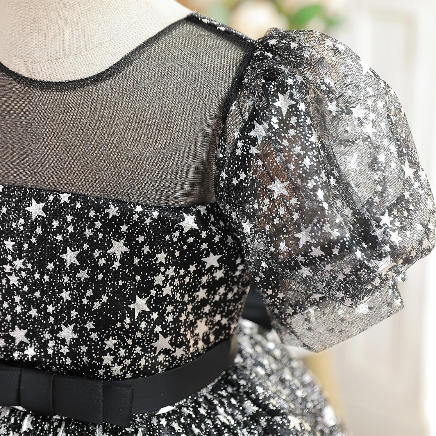 Ruffles Baby Birthday Clothes for Girls Sequin Elegant Wedding Princess Party Evening Dresses Bow Cute Toddler Kids Prom Gown