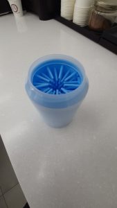It was perfect timing because I just washed my sheets and the boys needed a foot cleaning. I opened the box, took out the towel, and put water in it. 1 minute later, I have my pit bull’s feet all nice and washed. I love it already. It has a wide mouth so that even my pit’s big paws fit with no problem. Both of my dogs didn’t seem to mind it be I will admit that’s it’s a lot easier than just using a wet towel. It really gets a lot off and I can see it being great with soap for those extra dirty moments. There were a ton of options on Facebook and I’m glad I went with this one. Perfect device that does exactly what you need it to do bad for a great price.