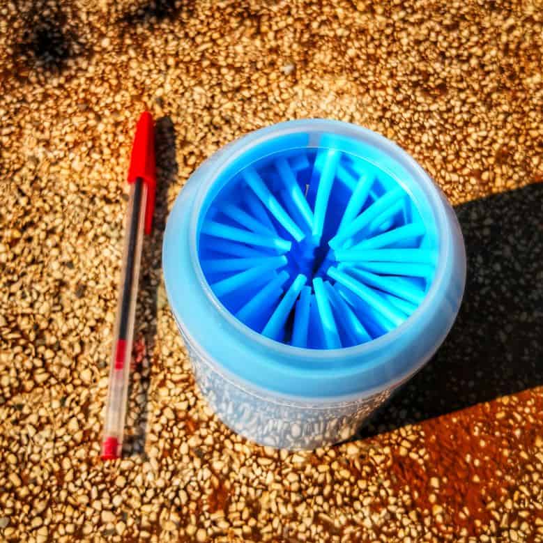 This has been a godsend. If it rains even a little, mud will get all impacted in my dog’s paws/pads. It drives me crazy. I was staining towels always trying to wipe all the mud off. This is so easy and makes cleaning her feet a breeze. I just dunk each foot a few times and twist a little, dry them off, and voila! I dump, rinse, and refill after each use. It’s amazing! No more muddy floors and towels.